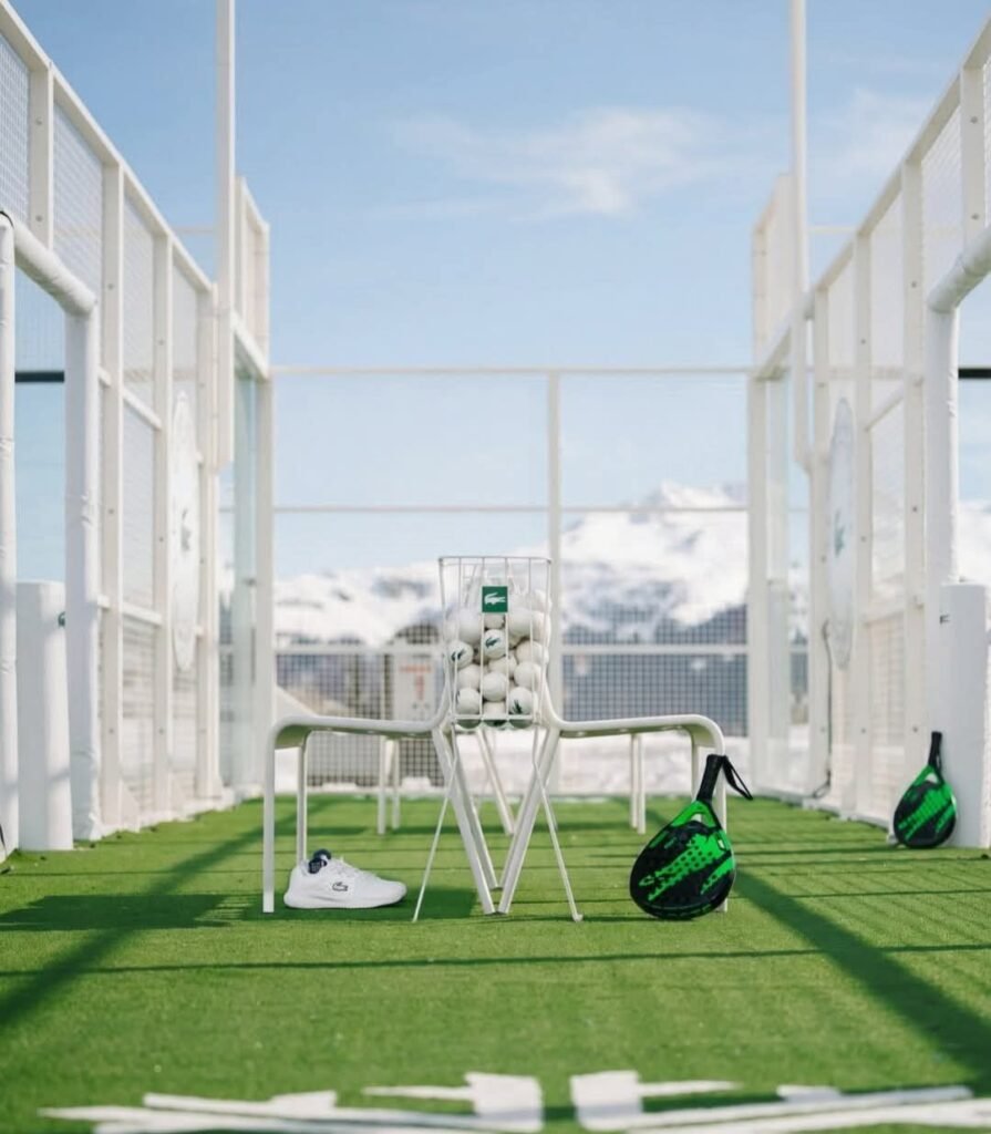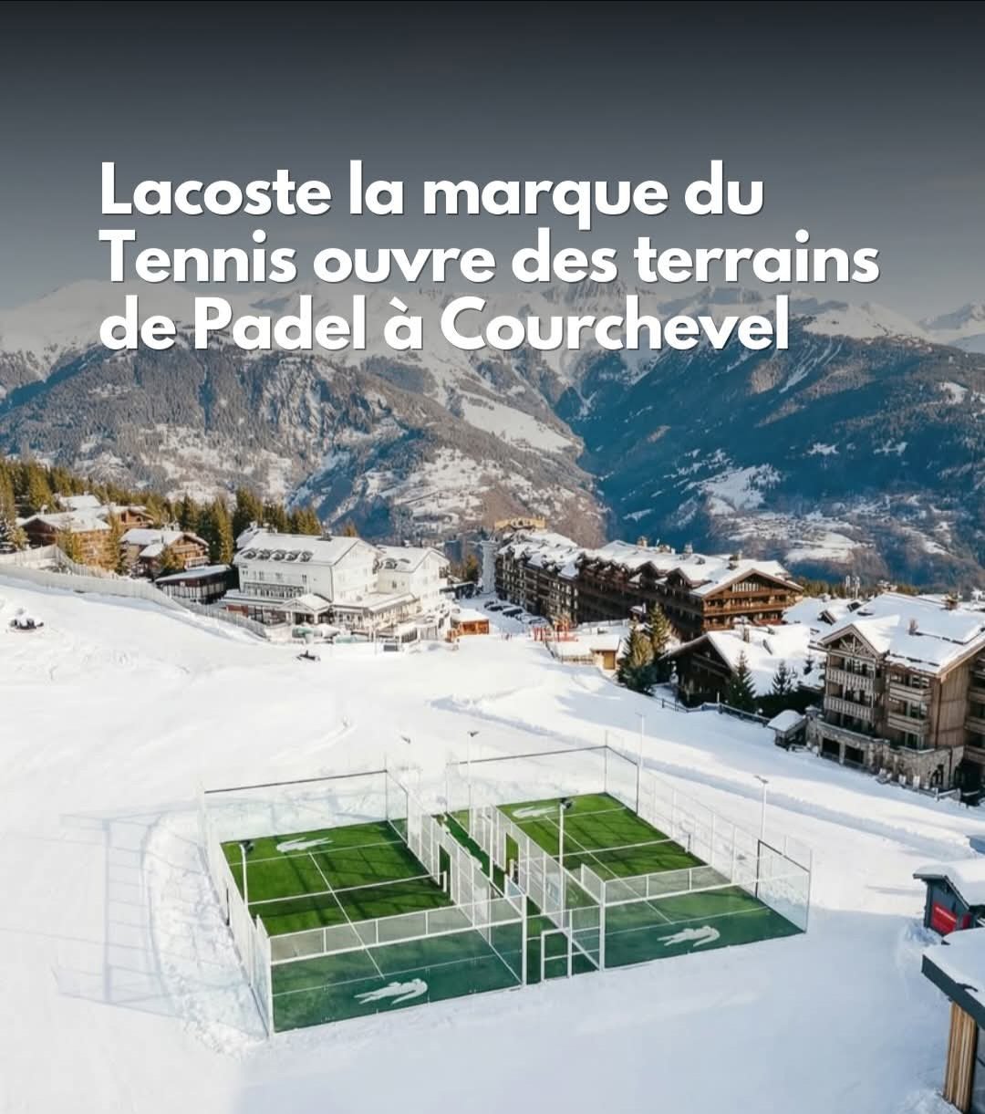 Pour marquer cette nouvelle étape, Lacoste n’a pas choisi n’importe quel décor. À Courchevel, station emblématique du luxe alpin, la marque a installé deux terrains de padel permanents au pied des pistes. Un choix audacieux, presque inattendu, qui associe sport, lifestyle et expérience premium.